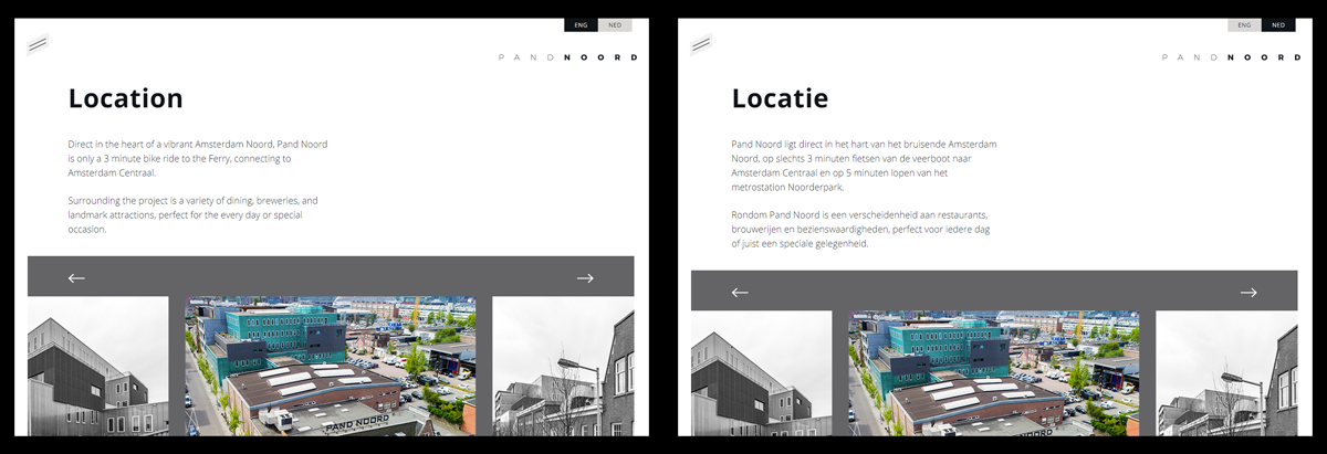 Located in Amsterdam with an audience of both English and Dutch speakers we needed to provide a way for users to see the same content but easily select their preferred language.
